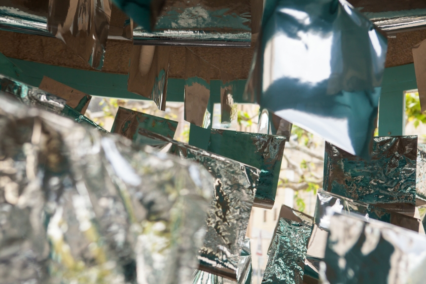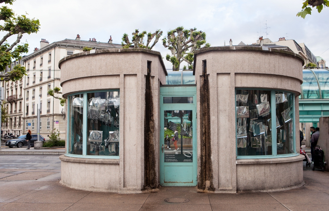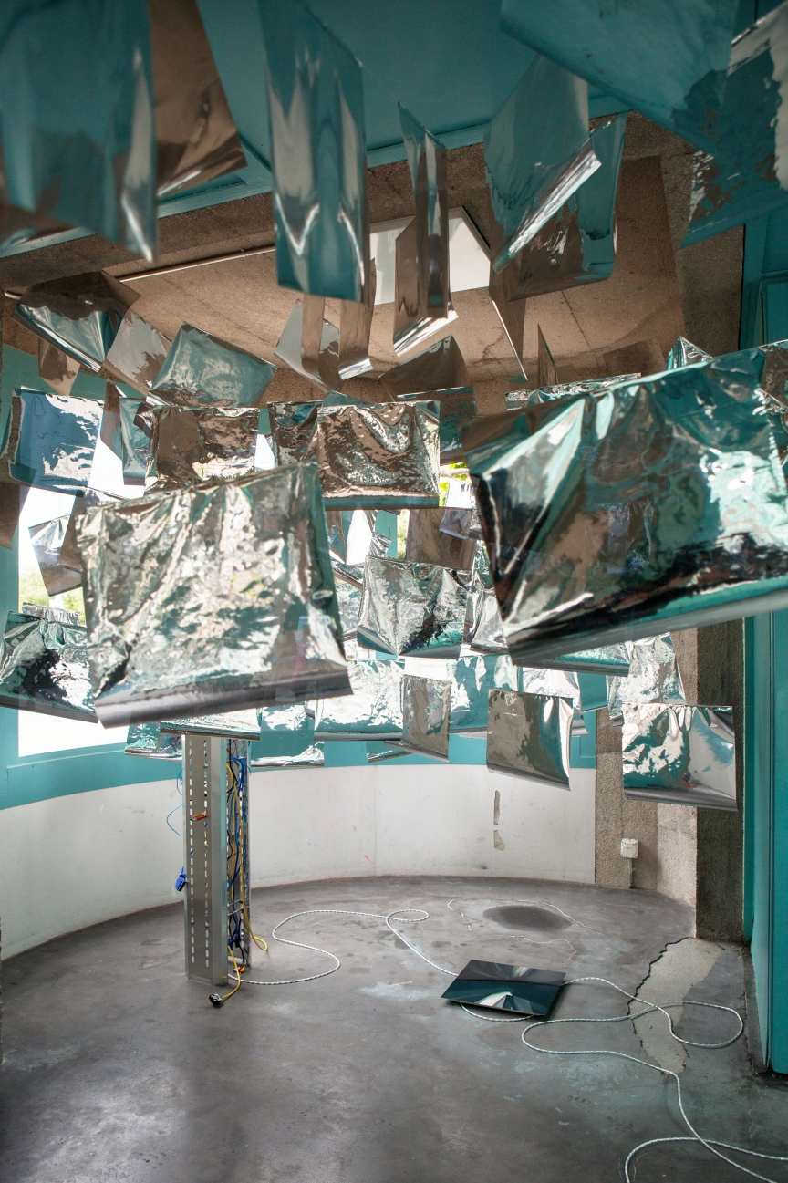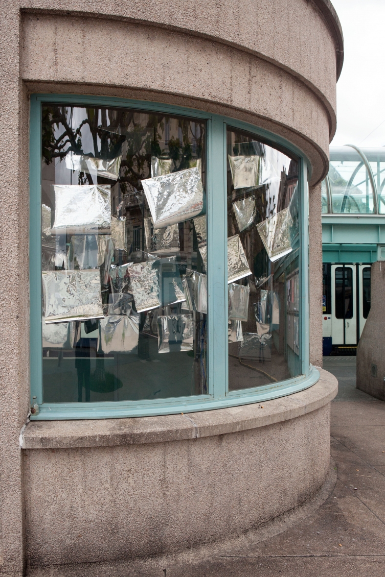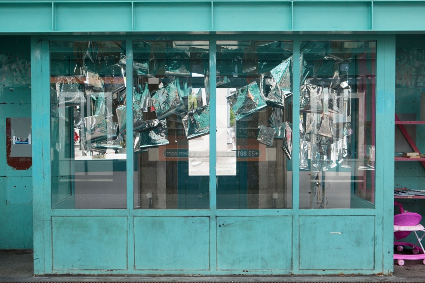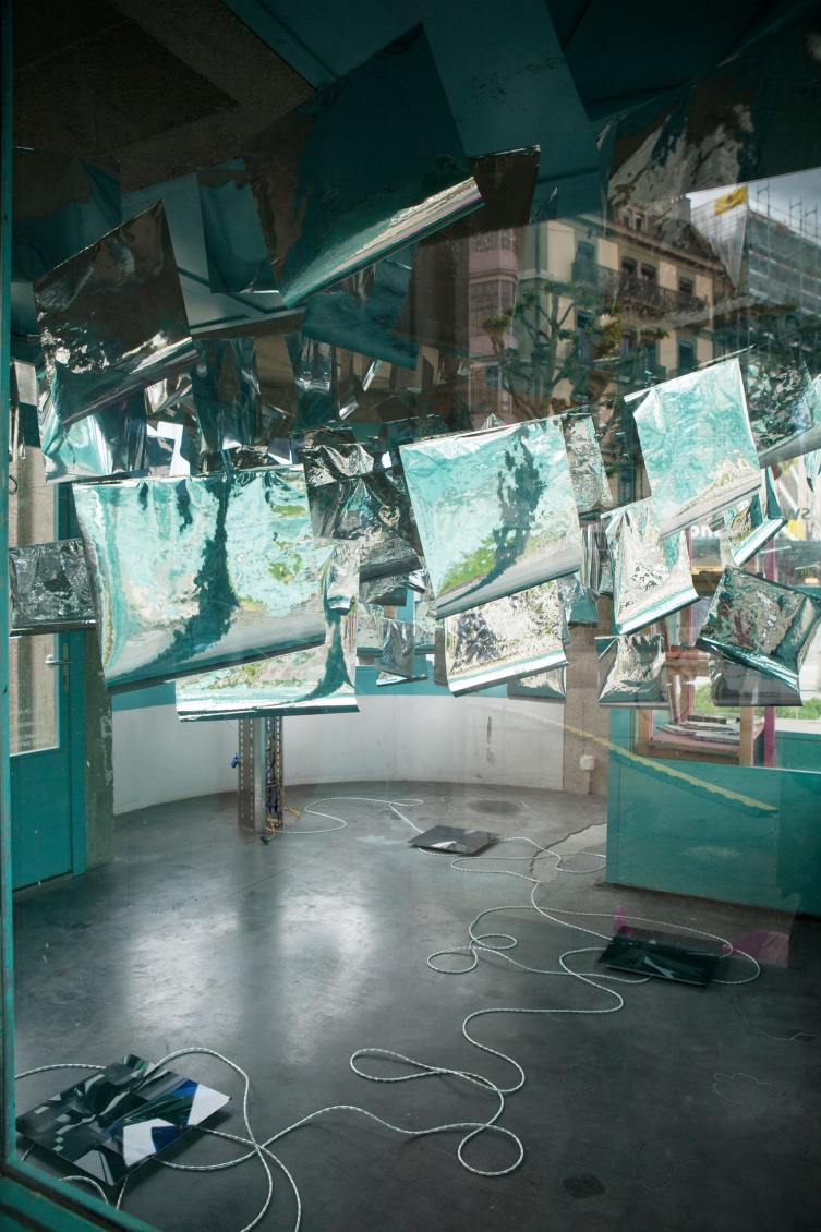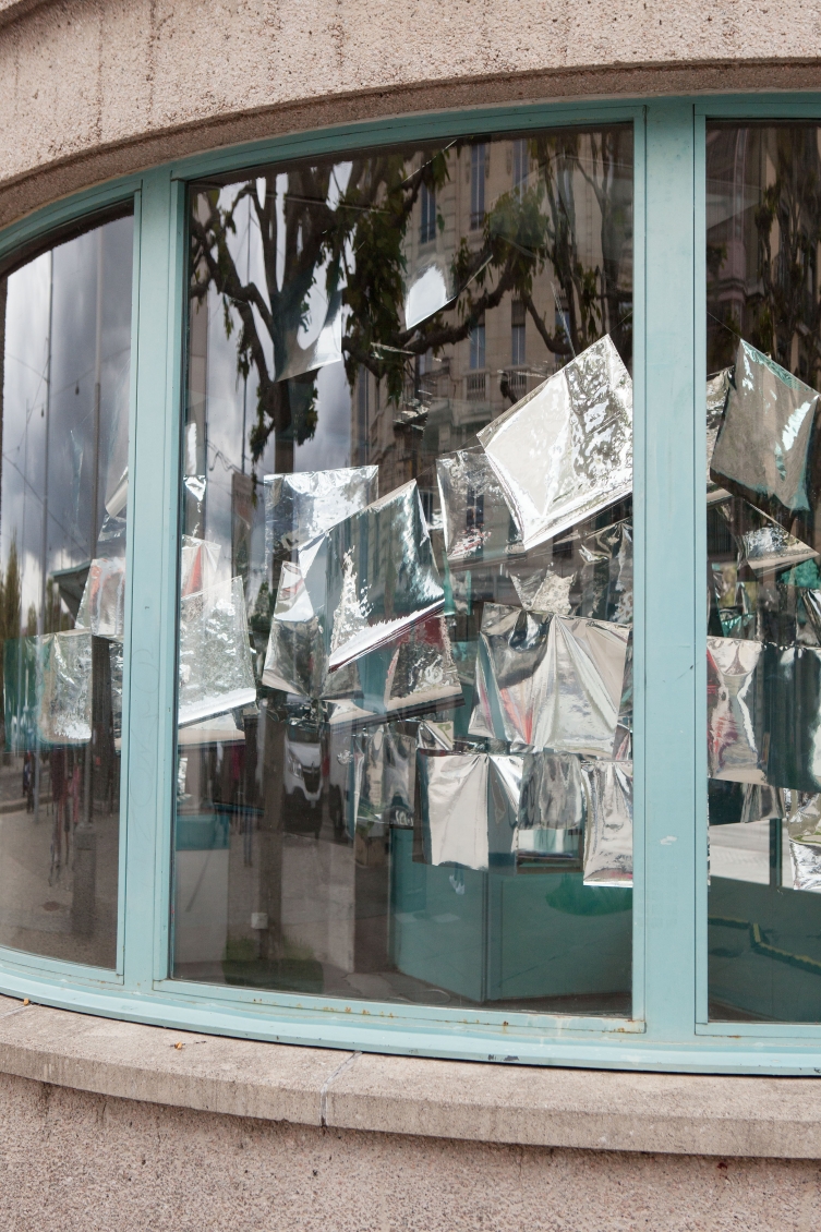 * For his solo exhibition "La tempête dans le nuage informatique" Till Langschied expands the installation of silver flags from his work Datapotheosis (2020) to fill the entire space of Zabriskie Point. The flags are reminiscent of Tibetan prayer flags, which send out blessings when moved by the wind. The artist draws a parallel between this religious function and the quasi-spiritual character of data traffic and uploads into an invisible ‘cloud‘. As such an entangled cloud the flags in the exhibition space can be seen as units in a server farm, enduring a constant storm of electronic impulses rushing through them.