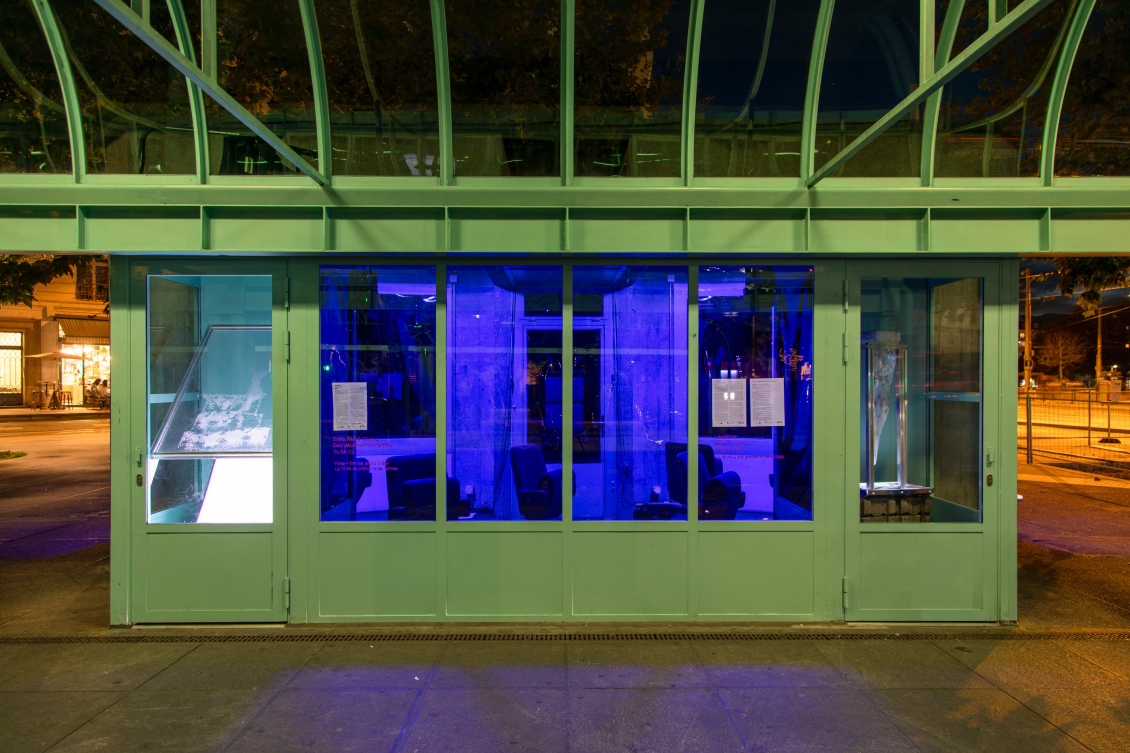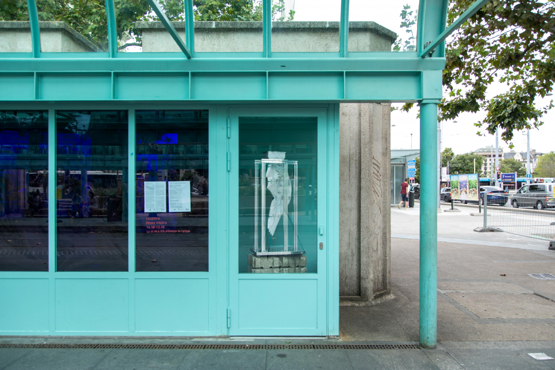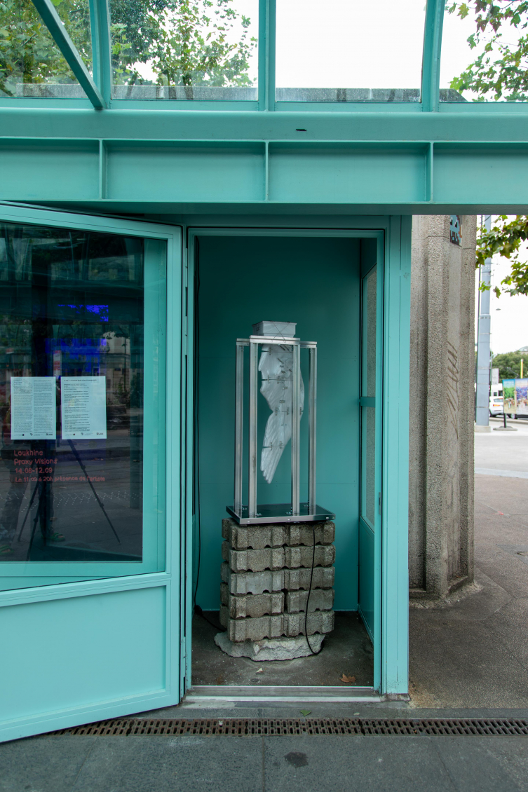 Pour la première fois investies par l’espace d’art Zabriskie Point, les deux anciennes cabines téléphoniques situées à l’arrêt du tram du rond-point de Plainpalais deviennent l’écrin idéal pour accueillir Proxy Visions, une installation issue du projet de diplôme de Loukhine (Kirill Tscheluchin), A Synthetic Chimera Caressed by Proxy Visions, saluée par les félicitations du jury du Bachelor en arts visuels de la HEAD Genève.