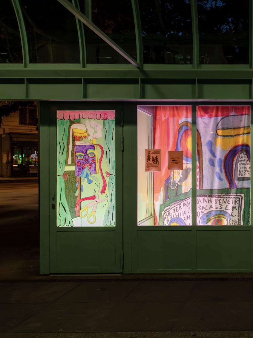 Pour Zabriskie, Léa Katharina Meier présente “Les Ciseaux Du Placard De La Bibliothèque”, une installation constituée de grands dessins imprimés sur tissus.