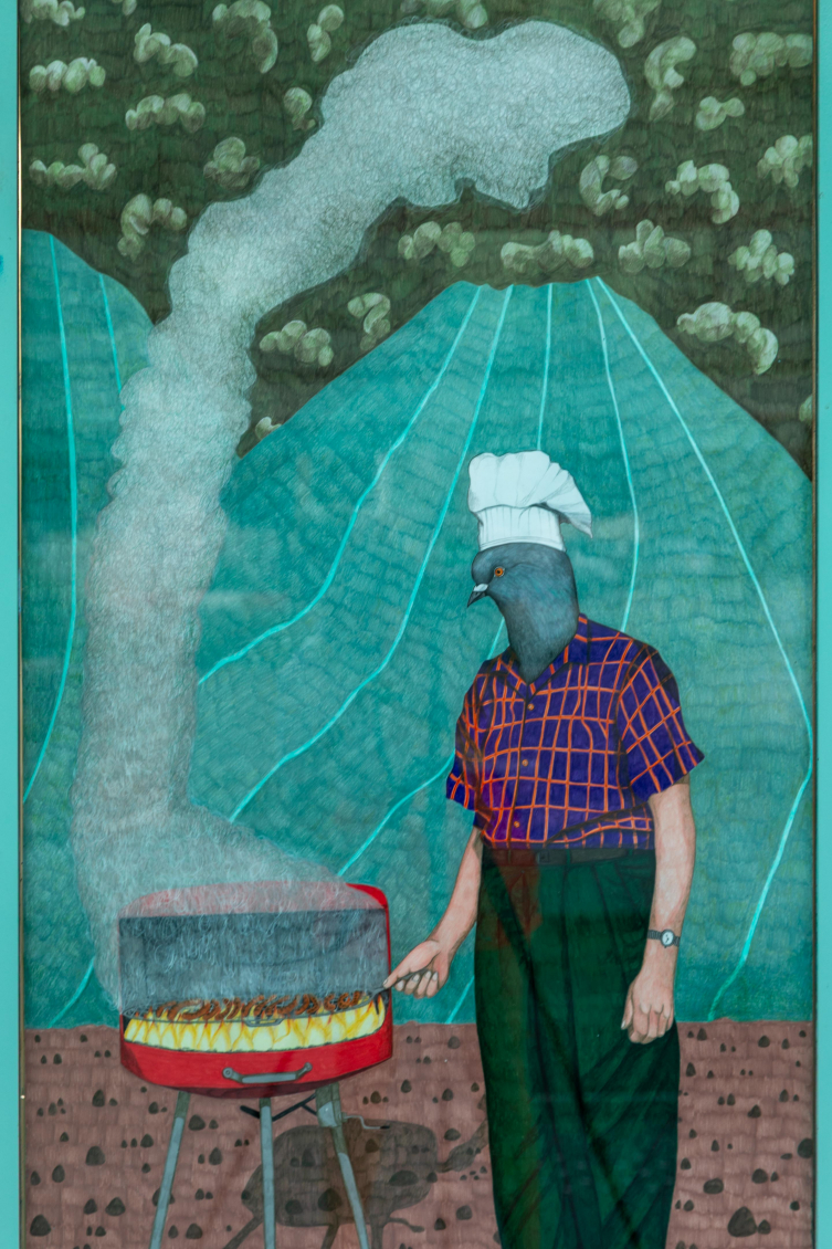 Alors que dehors la maison brûle ma vision se brouille tandis qu’une ombre se dessine sur le sable il me semble entendre le claquement des ailes d’un oiseau qui est déjà parti depuis longtemps. Un sentiment dérangeant de familiarité qui ne laisse rien de bon à présager. Il faut attendre que les saucisses soient cuites et se servir un autre verre de rouge pour garder un semblant de normalité."